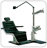 The lock/release mechanism is conveniently located under the slit lamp arm and allows height adjustment with single handed control. A 10” (26cm) range of travel from 26” (66cm) to 36” (91.5cm) from the fl oor and is counterbalanced to accommodate instruments up to 60lbs (27.2kg). The switch controlling the chair height is conveniently located on the front of the arm for easy, effortless access.
